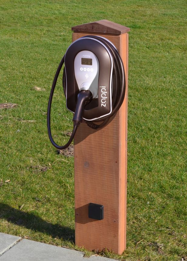 Universal Wallbox Standfuß aus Holz für viele Ladestationen